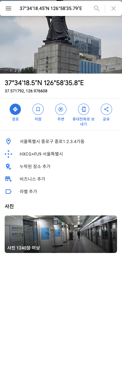 쨌든 그래서 마지막으로 그냥 사진앱으로 봤을때 나오는 저 위도와 경도를 구글 지도에 쳤다.