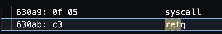 - 위 명령어를 사용하면 syscall instruction 다음 1개의 instruction까지 파싱해줌