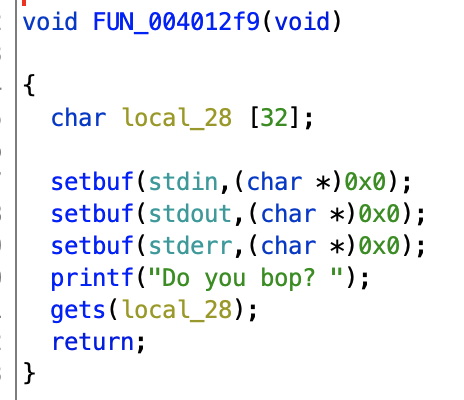 - very simple binary - Buffer overflow by gets()